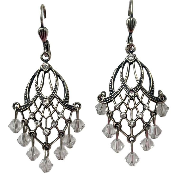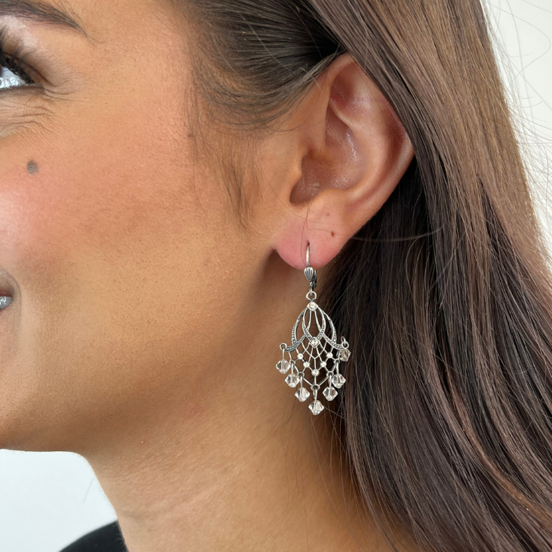 Everyone should have a classic pair of statement earrings. These delicate earrings have an intricate design punctuated with dangling crystals or pearls for the perfect pair to add a touch of elegance to any outfit.