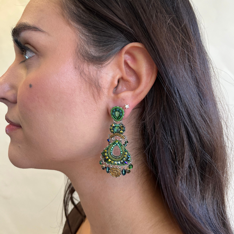 These stunning earrings embody joy and elegance with an exquisite combination of lush green tones paired with gold accents. The perfect statement earring for any event.