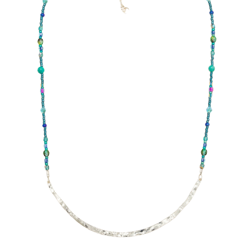 With a stunning combination of organically shaped beads and metallic shimmer, this necklace is as unique as you are. A playful addition to add a pop of colour to your fall wardrobe.