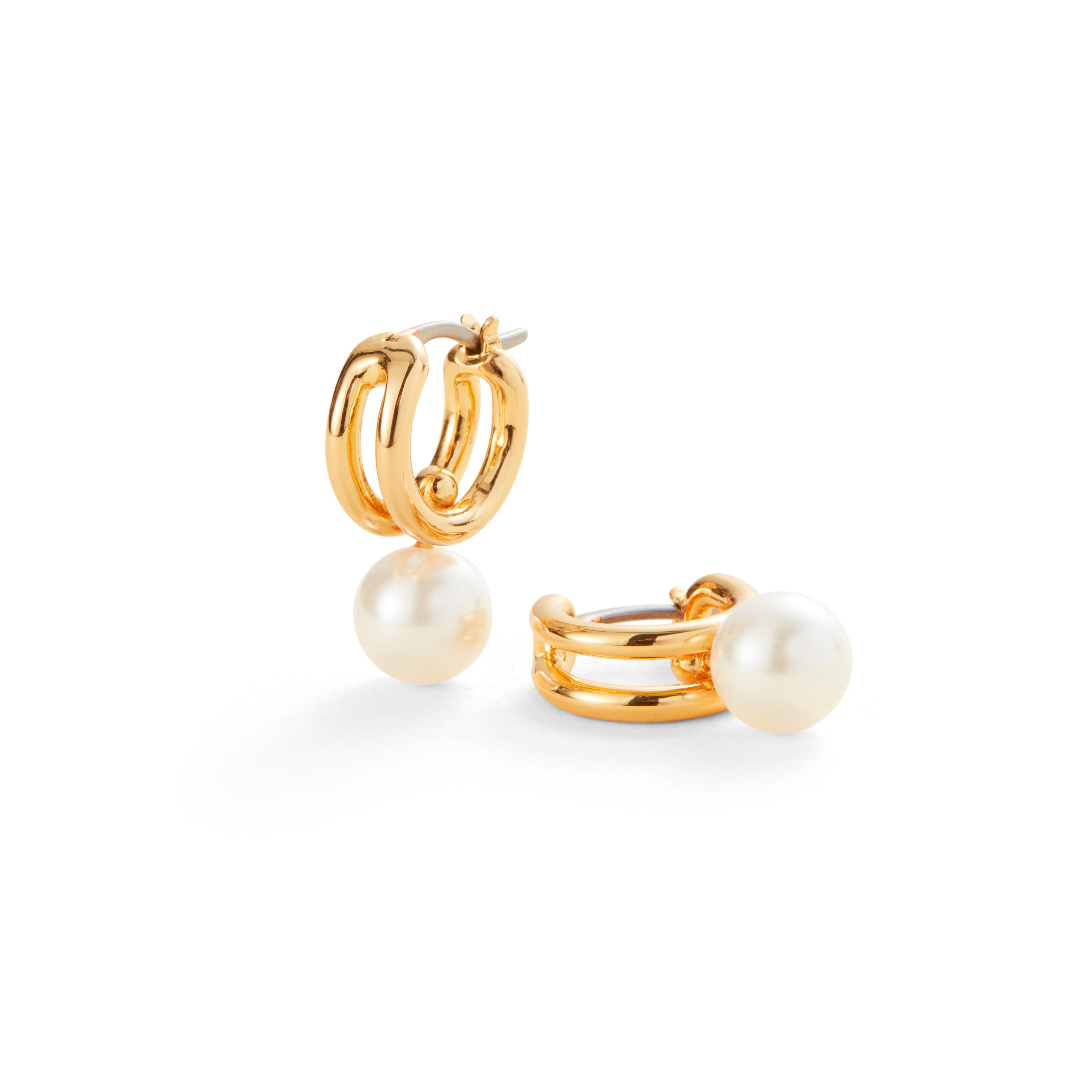 We love a modern twist to a classic pearl earring. The Nova huggie features a floating glass pearl, that is designed to glide back and forth to create subtle movement.