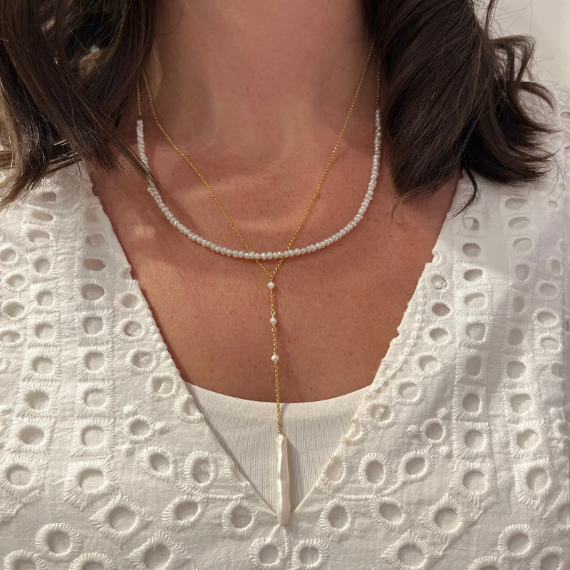When an occasion calls for femininity and romance, this necklace is the perfect fit. Dainty pearls are suspended from a delicate gold chain and can be worn alone or stacked with your other favourites.