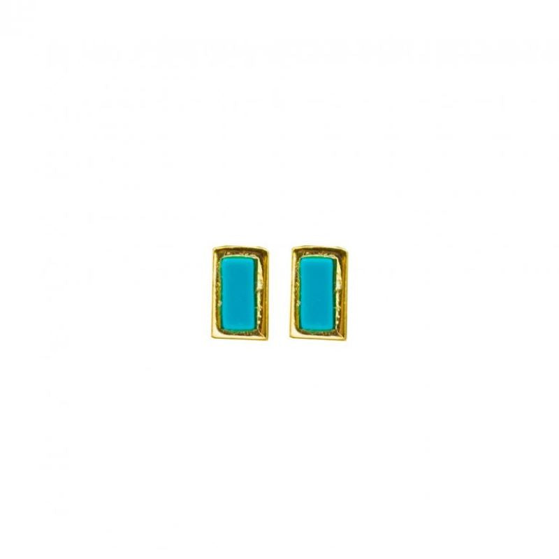 Beautiful gemstones elevate a simple rectangular stud setting. These unique studs are great on their own or with multiple piercings.