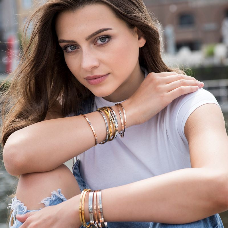 • Stainless steel bangle with crystal stone