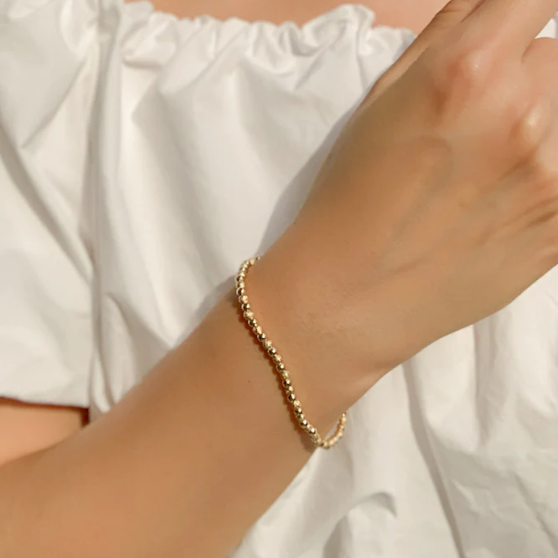 This bracelet is an elegant everyday staple. The gold beads are perfect to stack with your favourite bracelets, or wear alone for a simple and effortless look.