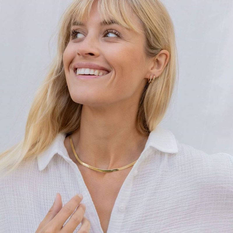 The Venice necklace is a jewelry collection must-have.  This piece sits flat on your collarbone and can be worn on its own or layered with your other favourites.