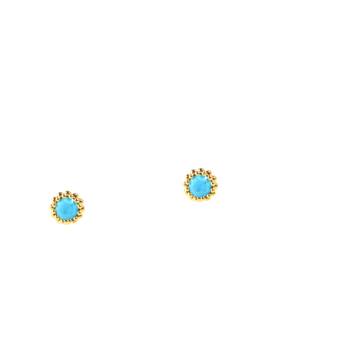 These delicate gold trimmed turquoise studs, will be a beautiful addition to your jewelry wardrobe. A great way to add a pop of colour to your outfit.